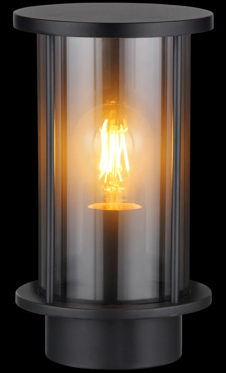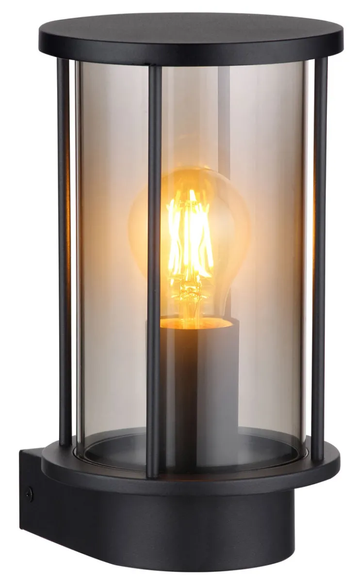 Die GLOBO Retrofit Außenwandleuchte GRACEY ist 1-flammig. Sie ist 25,2 cm hoch, 14,3 cm breit und 15,2 cm tief. Die Lampe aus schwarzem Edelstahl und rauchfarbenem Glas wiegt 1,21 kg und wurde speziell für den Außenbereich konzipiert.