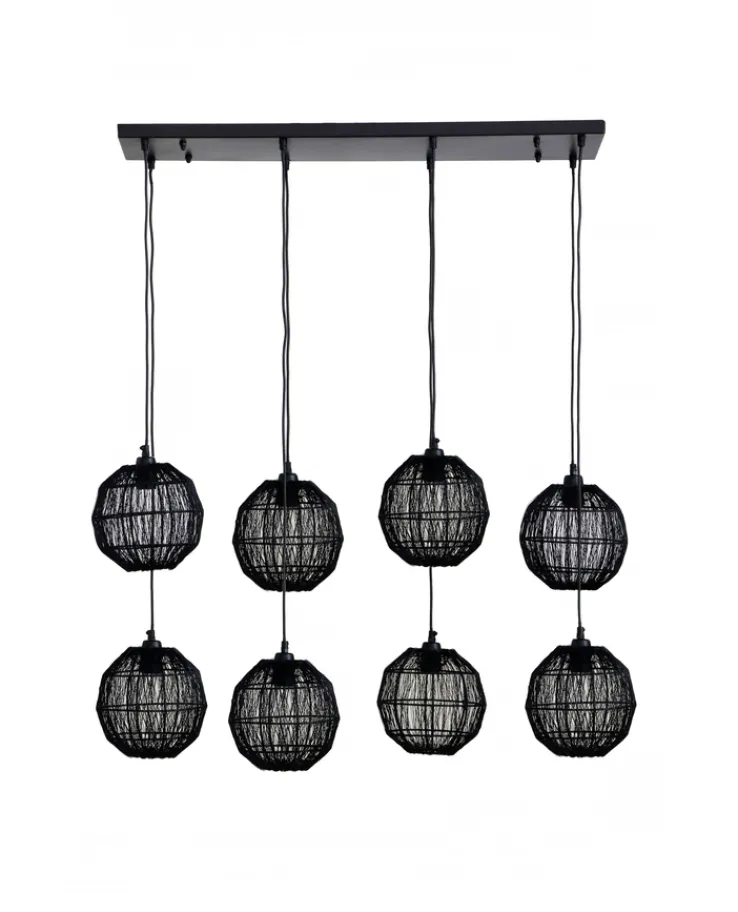 Der 8-flammige Retrofit Balkenpendel HERMI II von GLOBO in der Farbe Schwarz ist das optimale Beleuchtungselement für große Wohn- oder Esszimmer. Durch die kugelförmigen Lampenschirme versprüht die Leuchte einen besonderen Charme und passt über große Wohn- oder Esszimmertische. Für die optimale Ausleuchtung sind die einzelnen Schirme bei der Montage individuell in der Höhe verstellbar. Der Balkenpendel sorgt für ein angenehmes Licht und schafft eine wohnliche Atmosphäre.