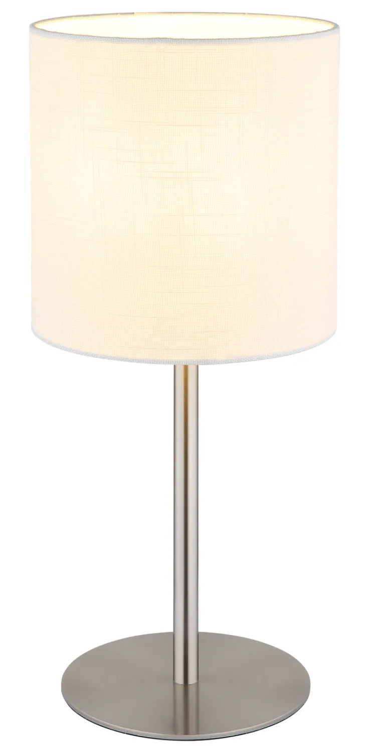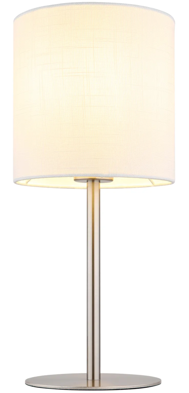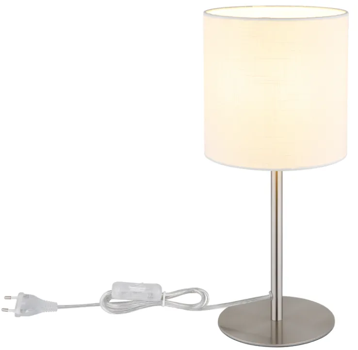 Die Tischlampe „Benson“ von Globo vereint klassisches Design mit modernen Elementen und passt perfekt in verschiedene Einrichtungsstile wie Skandi und Japandi. Der zylindrische Lampenschirm aus weißem Textil verleiht der Lampe eine elegante Note, während der stabile Tellerfuß aus metallischem Alu-/Nickelfarbton für einen sicheren Stand sorgt. Mit einem Durchmesser von 18 cm und einer Höhe von 40 cm ist sie ideal für den Einsatz auf Beistelltischen oder Nachttischen geeignet.