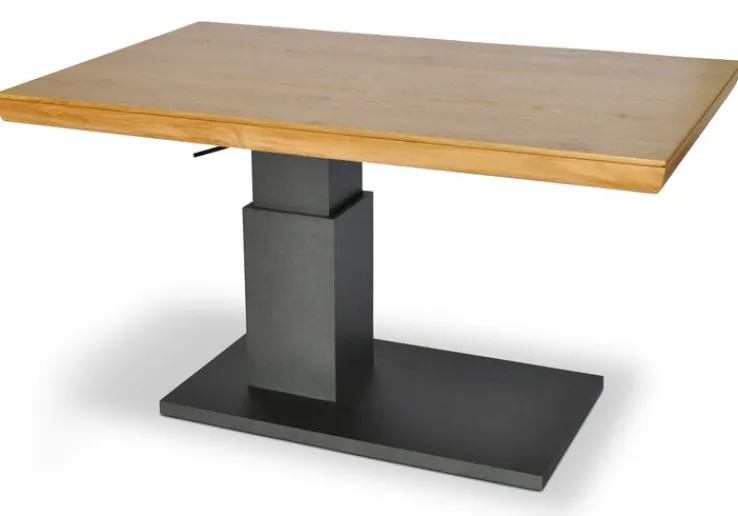 Der stilvoll gestaltete Couchtisch von HAUKE HENDRIKS hat eine Tischplatte mit den Maßen 110 x 70 cm und überzeugt mit seinem zeitlosen Design. Durch seine Oberflächen in der Farbe schwarz und der Tischplatte in massiver Asteiche passt der Tisch in das modern eingerichtete Wohnzimmer. Das seitlich versetzte Säulengestell ist für eine individuelle Höhenverstellung mit einer Liftfunktion ausgestattet. Der Couchtisch bietet viel Platz für Snacks und Getränke an einem gemütlichen Fernsehabend.