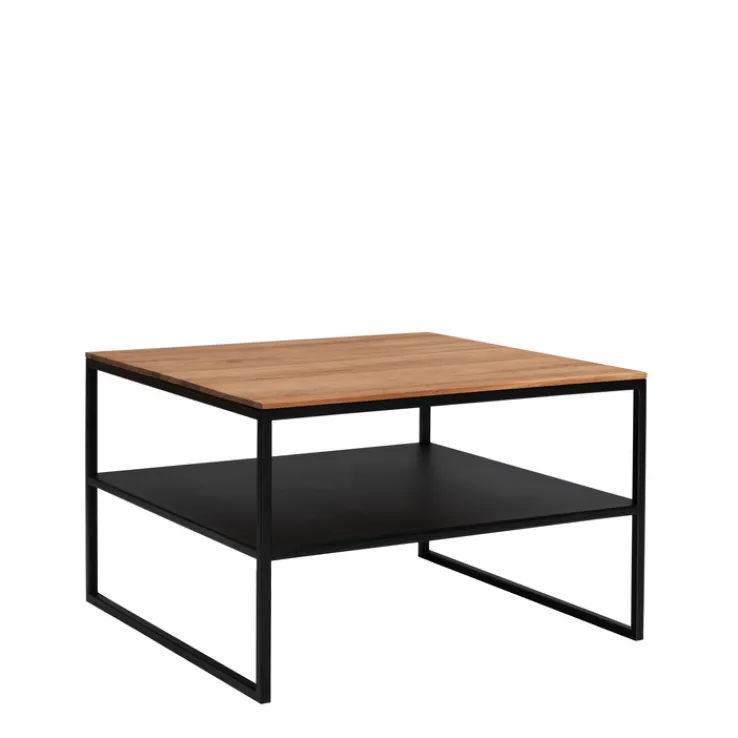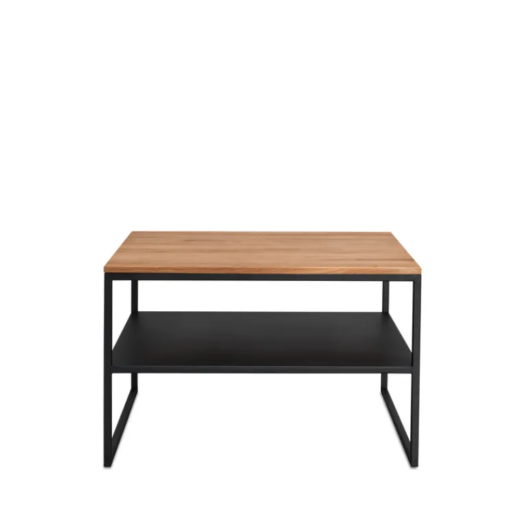 Der quadratische HAUKE HENDRIKS Couchtisch MARCO IV vereint die massive, geölte Tischplatte mit einem robusten Vierkantgestell aus schwarz pulverbeschichtetem Metall. Seine Tischplatte ist nicht nur stabil und strapazierfähig, sie verleiht dem Wohnzimmer zudem ein wohnliches Ambiente. Die Tischplatte bietet zudem ausreichend Platz für Getränke und Snacks. Erweitert wird die Abstellfläche von der zusätzlichen Ablage aus Metall, die Fernbedienung und Lesestoff während des Tages sicher verwahrt.