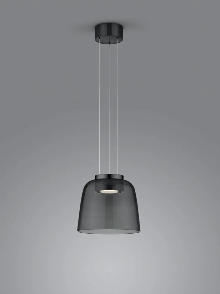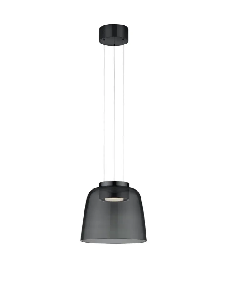 Die LED Pendelleuchte ODA von helestra in der Farbe Schwarz überzeugt durch ihr stilvolles Design und passt in moderne Raumkonzepte. Dank des tollen Stils, mit einem Lampenschirm aus Rauchglas, fügt sich die 1-flammige Leuchte harmonisch in verschiedene Raumkonzepte ein. Die in der Höhe einstellbare Leuchte eignet sich für individuelle Beleuchtungsideen im Wohn- oder Esszimmer. Die dimmbare Pendelleuchte setzt einen einzigartigen Akzent und schafft stets eine wohnliche Atmosphäre.