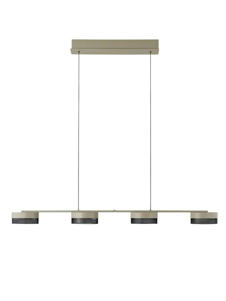 4 Lichtquellen auf einer Breite von 110 Zentimetern und einer (verstellbaren) Höhe von 150 Zentimetern, sorgt das LED Balkenpendel MESH von HELL über Arbeits- und Esstischen für punktgenaue Helligkeit. Das ist Industrial Design par excellence! Balken und Basis der vier Lampen sind aus beigem Eisen (Farbton Sand) gestaltet, der Schirm besteht aus schwarzem Lochblech (Mesh).