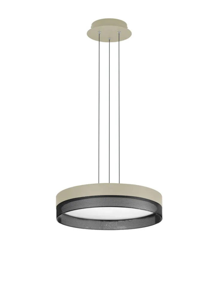 Wie edel die Kombination aus den Farben Sand und Schwarz aussehen kann, zeigt die attraktive Pendelleuchte MESH aus Eisen. Die Pendelleuchte MESH von HELL ist eine elegante Pendellampe für Innenräume. Das 1-flammige Modell, bei dem das LED-Leuchtmittel bereits enthalten ist, misst 45 cm im Durchmesser und besitzt eine Höhe von 150 cm.