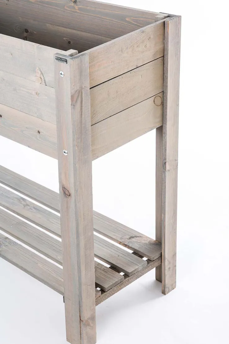 Das holz4home Hochbeet misst 80 x 37 cm, die Gesamthöhe beträgt 78 c. Das Naturholz in Kiefer ist grau-weiß eingelassen und für den Außenbereich gedacht.