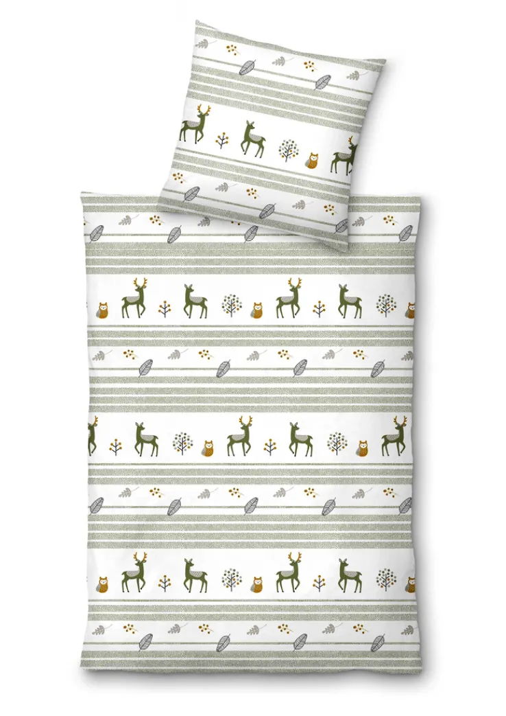Das Design der Bettwäsche zeichnet sich durch ein natürliches Muster aus, das auf dem Bild sichtbar ist. Es zeigt stilisierte Waldtiere und Pflanzen in dezenten Farben, die eine beruhigende Atmosphäre schaffen. Die Hauptfarbe ist silberfarbig mit grauen Akzenten, die sich harmonisch in verschiedene Schlafzimmerdekore einfügen. Ein praktischer Reißverschluss erleichtert das Beziehen und Abziehen der Bettwäsche. Dieses Set ist nicht nur funktional, sondern auch ein stilvolles Element für Ihr Schlafzimmer.