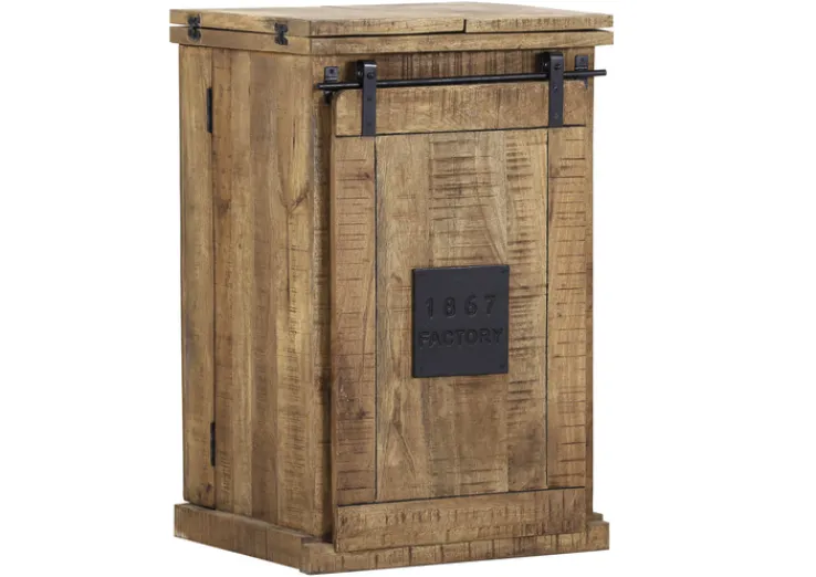 Der elegante Barschrank BARNEY aus massivem Mango-Holz in den Maßen 60-120 x 52 cm bietet enormen Stauraum in kompakter Bauform. Der rustikale Barschrank überzeugt dabei nicht nur durch sein Innenleben, sondern auch durch seine schönen Kontraste dank der schwarzen Griffe und Beläge.