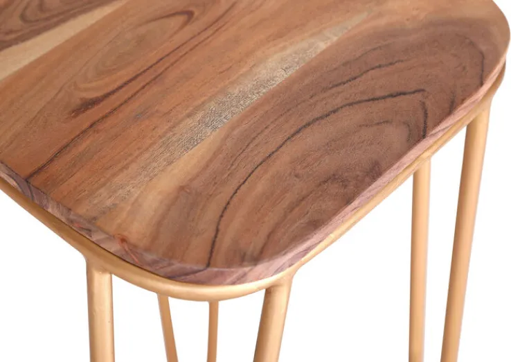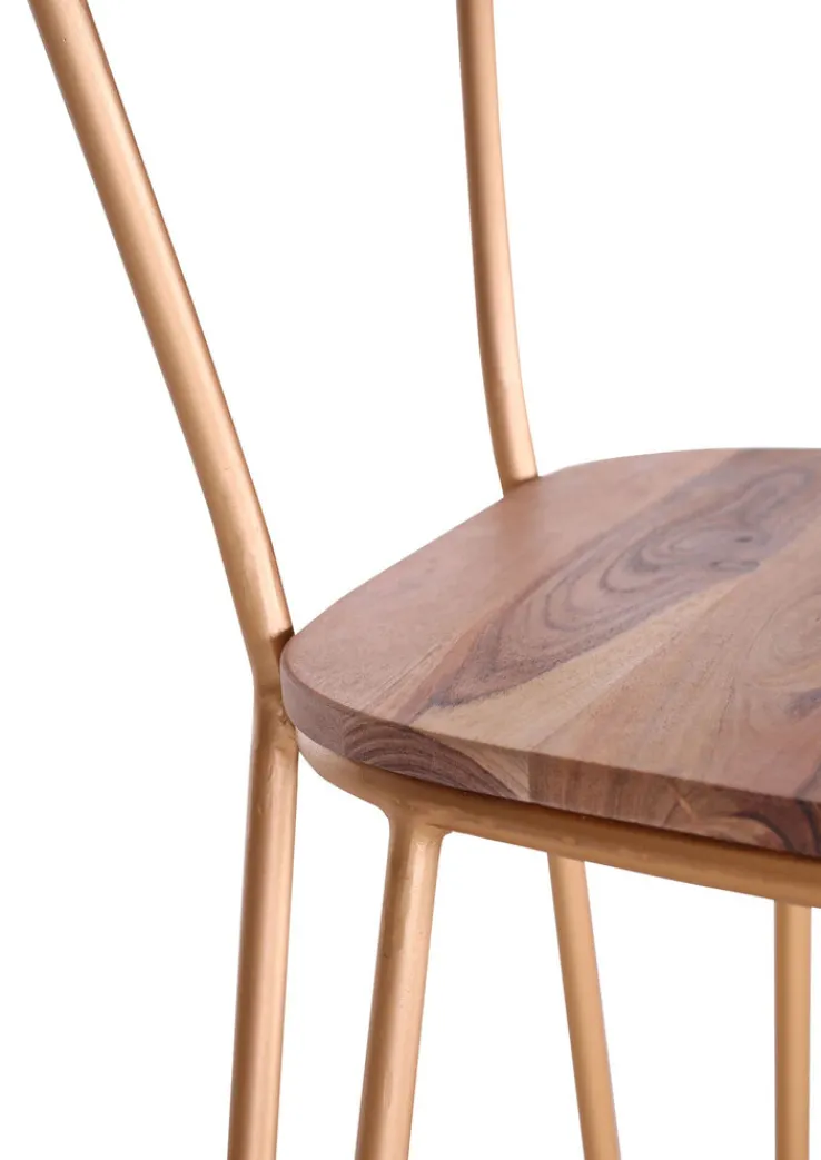 Der Barstuhl STRANGE von der Marke INTERhome ist in einer interessanten Kombi aus Akazie massiv und der Nuance Goldfarbig designt. Er präsentiert sich ausgesprochen elegant und kann sich zu den unterschiedlichsten Einrichtungen gesellen. Die Maße lauten in der Breite 50 cm, Höhe 109 cm und Tiefe 45 cm. Die Sitzhöhe beträgt 71 cm.