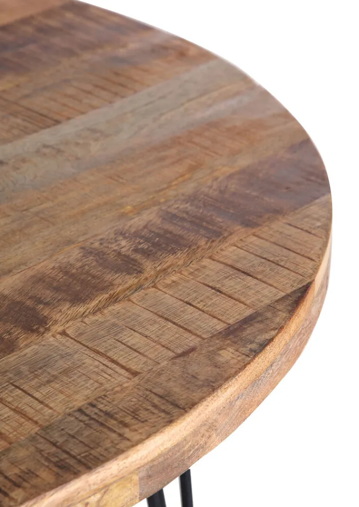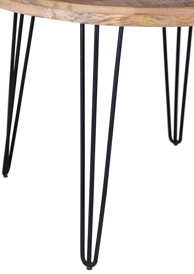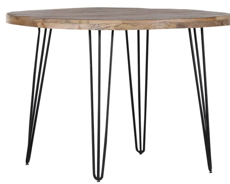 Die Marke INTERhome bietet mit dem runden Esstisch BALTIC ein praktisches und hochwertiges Möbelstück mit einer massiven Platte aus robustem, langlebigem, braun gebeiztem Mangoholz. Das Gestell aus vier schwarz lackierten Metallfüßen in Haarnadeloptik gibt ihm stabilen Stand und trägt zur modernen Optik im Industrial Stil bei. Zusammen mit modernen Möbeln entfaltet er seine volle Wirkung.