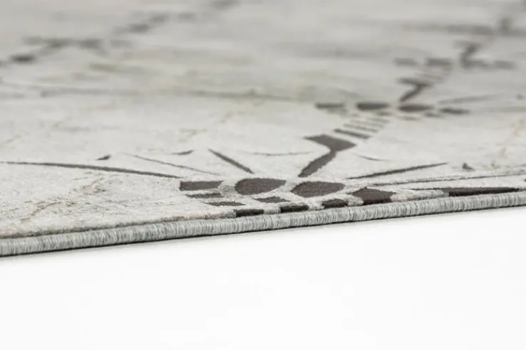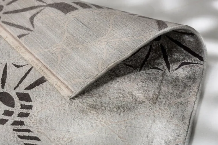 Der silberfarbige Teppich CORNFLOWER DOUBLE hat eine Größe von 140 x 200 cm und fällt durch ein wunderschönes florales Muster auf. Seine Gesamtflorhöhe beträgt 6 mm.