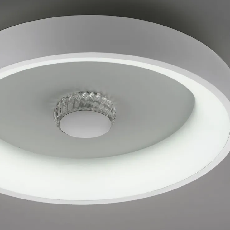 Die JUST LIGHT LED Deckenlampe VERTIGO hat einen Durchmesser von 46 cm, sie ist 10 cm hoch. Sie ist weiß, einflammig, dimmbar und verfügt über eine Lichtfarbverstellung. Diese elegante Lampe gefällt! VERTIGO sorgt für angenehm wohnliches Licht in Innenräumen, egal, ob im Schlafbereich, im Wohnzimmer oder im Flur. Ihr schönes Design wird durch den Kristalleffekt betont, der an klassische Leuchter erinnert. Gemütlich von der Couch aus kann via Fernbedienung die Lichtfarbeinstellung und die Helligkeit reguliert werden. So lässt sich einfach mit einem Handgriff das Licht auf die ganz persönliche Stimmung abstellen. Die LED-Leuchtmittel sind fest eingebaut. Eine Montageanleitung kommt mit der Lampe ins Haus.