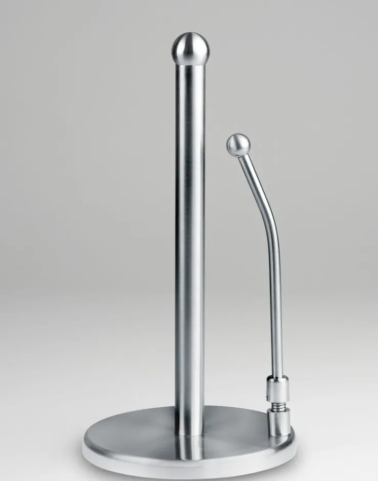 Der 34,5 cm hohe Küchenrollenhalter LIFESTYLE aus hochwertigem Edelstahl bietet einen sicheren und dekorativen Aufbewahrungsort für Ihre Küchenrollen. Neben einem Aufsteckstab auf einem standfesten Rundsockel befindet sich ein dünnerer beweglicher Stab. Dieser hält die Küchenrolle auf Spannung und erleichtert damit das Abreißen des Papiers.
