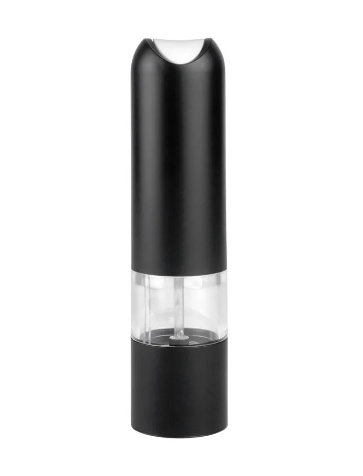 Die moderne JUSTINUS Pfeffer-/Salzmühle LIFESTYLE besteht hauptsächlich aus schwarzem Kunststoff und ist mit einem Druckschalter in kontrastierendem Weiß ausgestattet. Der Füllstand des enthaltenen Pfeffers oder der Füllung mit grobkörnigem Salz kann durch einen transparenten Kunststoffeinsatz jederzeit eingesehen werden. Die Pfeffermühle hat eine Höhe von 21 cm sowie einen Durchmesser von 5 cm und liegt damit gut in der Hand. Durch den elektrischen Antrieb ist unkompliziert eine einhändige Bedienung möglich. Da das Mahlwerk auf Keramikbasis konstruiert ist, zeichnet sich dieses praktische Küchenutensil durch eine langfristig nur geringfügige Abnutzung aus. Da die JUSTINUS Pfeffer-/Salzmühle LIFESTYLE auch über eine integrierte Beleuchtung verfügt, ist die Verwendung auch in romantischem Ambiente problemlos möglich.