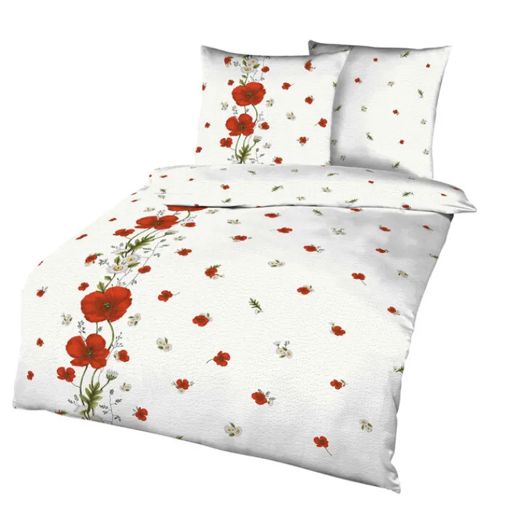 Die weiße kaeppel Bettwäsche mit dem roten Blumenprint ist optisch ganz auf Sommer eingestellt. Sie erhellt das Schlafzimmer und sorgt für eine romantische Atmosphäre im Raum. Auch mit den sommerlichen Eigenschaften des leichten Stoffes in Seersucker-Qualität kann die Bettwäsche RED POPPY überzeugen.