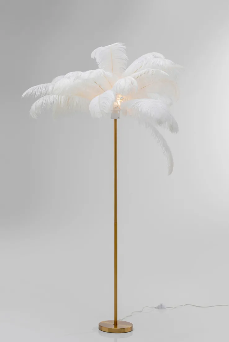 Die Deko-Stehleuchte „FEATHER PALM“ von Kare Design vereint Glamour und Eleganz in einem einzigartigen Design.