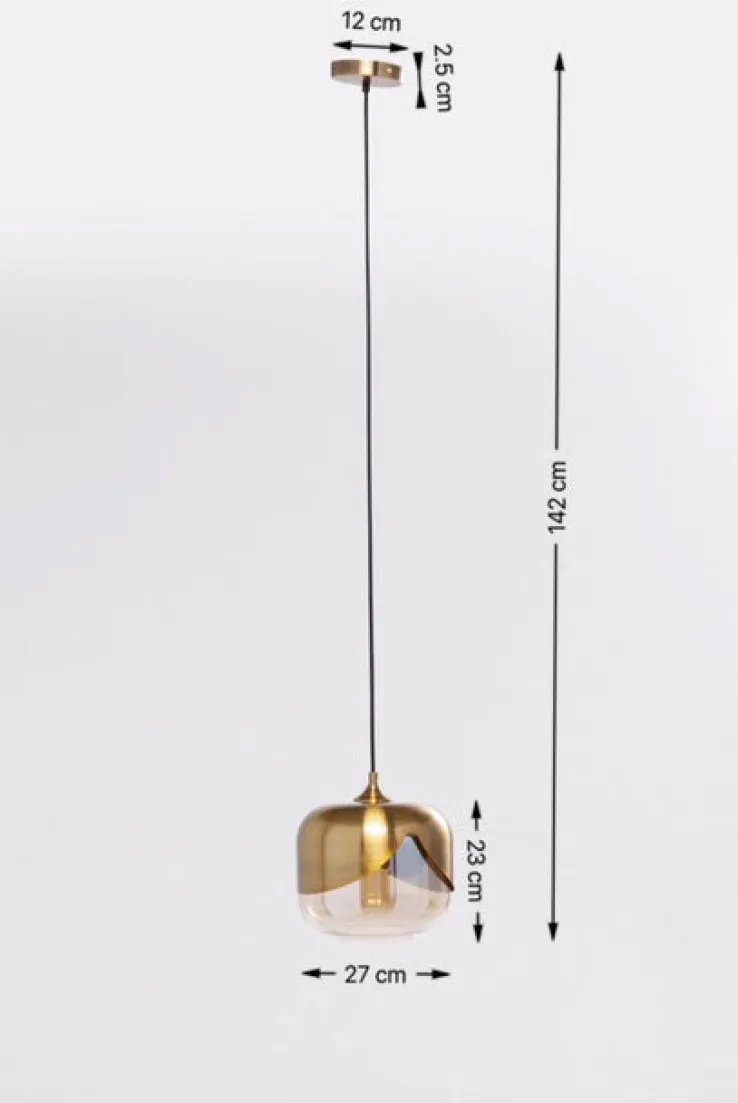 Die edle KARE DESIGN Retrofit Hängelampe GLOBLET BALL hat einen Durchmesser von 27 cm und kombiniert messingfarbig beschichteten Stahl mit Farbglas. An ihrem langen Pendel hängt die Lampe 142 cm von der Decke. Sie wird mit einer 40 Watt AGL oder Retrofit Glühbrine mit E27 Fassung betrieben, die gesondert erhältlich ist und sich jederzeit wechseln lässt. Mit ihrem zweifarbigen Lampenschirm ist die Hängelampe jedoch nicht nur ein wunderschöner Blickfang, sie sorgt zugleich für eine angenehme Beleuchtung ohne Blenden.