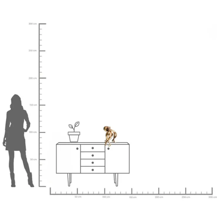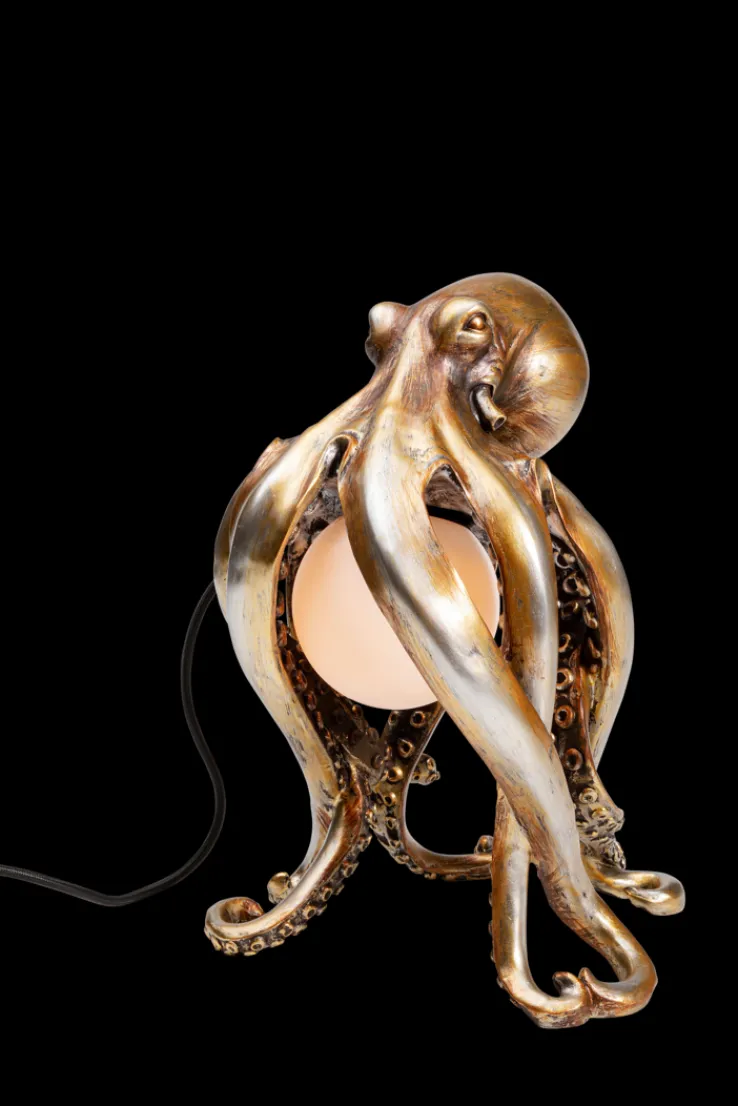 Diese Leuchte besticht durch ihre auffällige Form eines Oktopus, die in einem glamourösen Goldfarbton gehalten ist. Die detailreiche Gestaltung der Tentakel und die goldfarbene Oberfläche verleihen der Leuchte einen luxuriösen und einzigartigen Charakter, der in jedem Raum zum Blickfang wird.