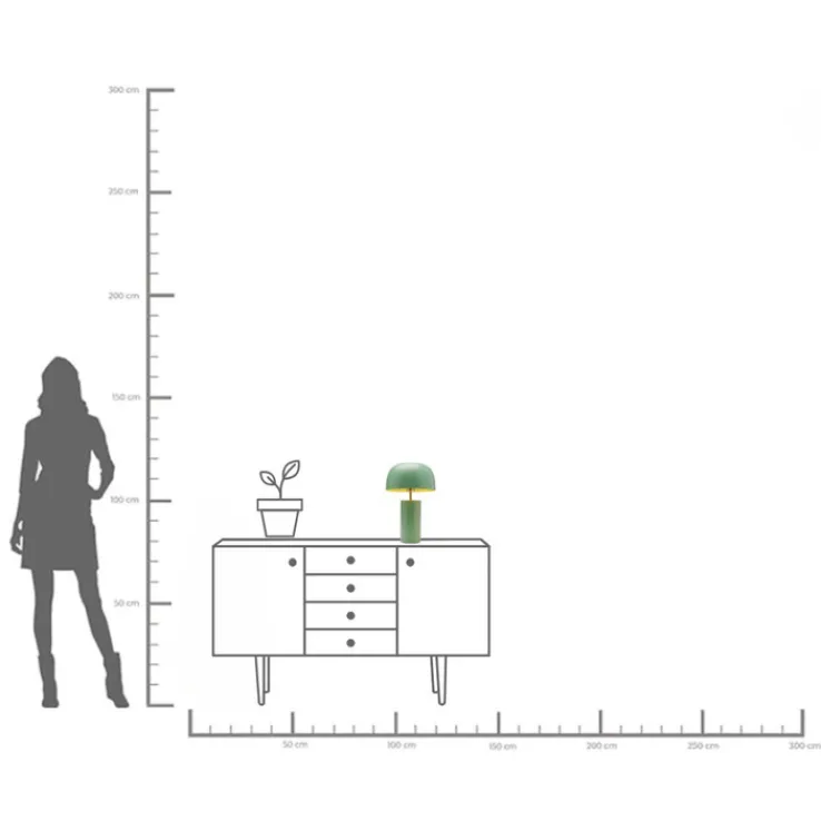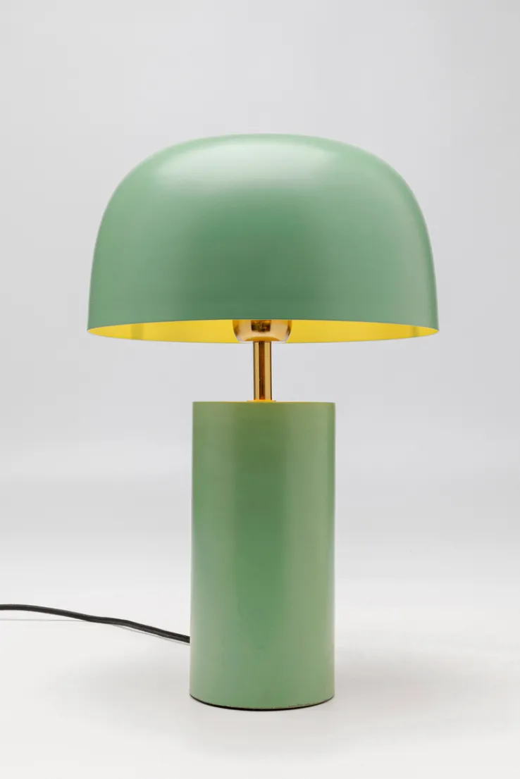 Die Farbe der Leuchte ist ein elegantes Salbeigrün. Der Lampenschirm und der Sockel bestehen aus lackiertem Stahl, was der Leuchte eine robuste und zugleich glamouröse Ausstrahlung verleiht. Die Leuchte ist mit einer E14-Fassung ausgestattet und ermöglicht den Einsatz von wechselbaren Leuchtmitteln bis zu 15 Watt. Ein praktischer Schnurschalter sorgt für eine einfache Bedienung. Die Zuleitung hat eine Länge von 200 cm, was flexible Platzierungsmöglichkeiten bietet.
