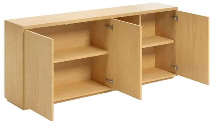 Mit seinem schlicht-eleganten Design ergänzt sich das Kave Home Sideboard zu vielseitigen Einrichtungsstilen und macht sowohl im Wohnzimmer als auch im Esszimmer, im Büro oder im Schlafzimmer eine gute Figur. Drei offene Fächer bieten schnellen Zugriff und eignen sich gut für allerlei dekorative Artikel. Hinter einer einzelnen und zwei zusammenhängenden Drehtüren mit je einem Zwischenboden ist hingegen ausreichend Stauraum für Geschirr, Bettwäsche, Büroartikel und vieles mehr gegeben.