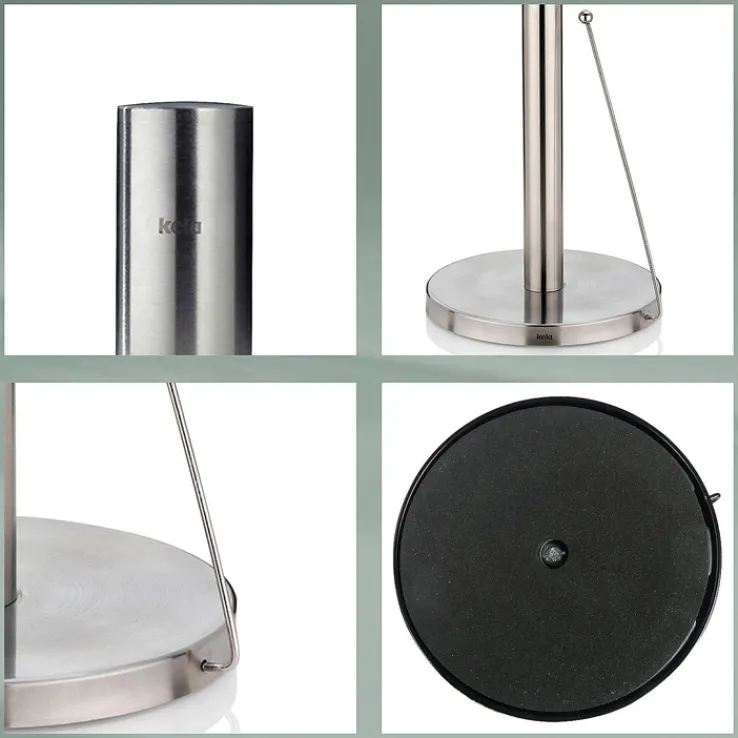 Mit dem ebenso stilvollen wie praktischen kela Küchenrollenhalter ROLLO ist die Küchenrolle immer griffbereit. Silberfarbiges Metall verleiht dem 33,5 cm hohen Ständer eine zeitlos elegante Ausstrahlung.