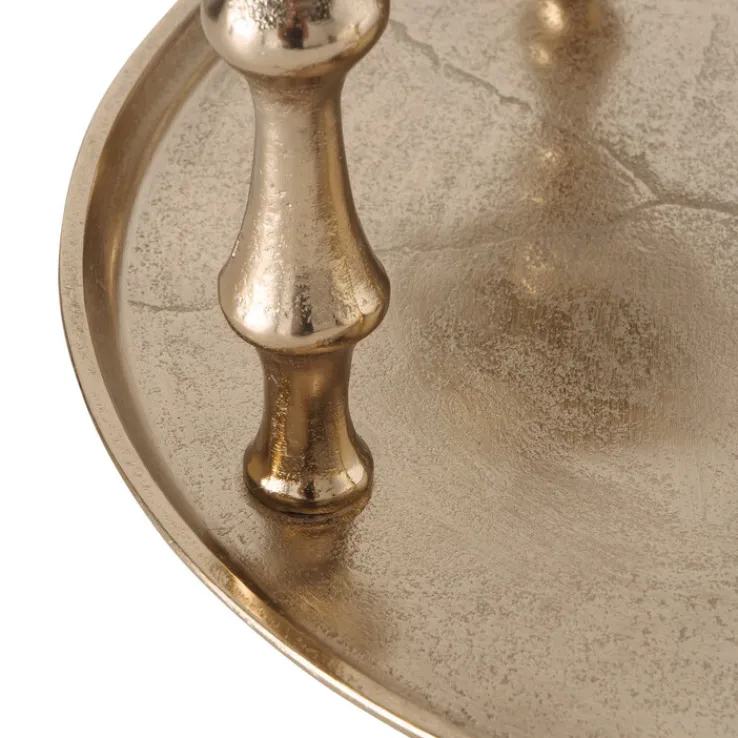 Der goldfarbige Kerzenleuchter FURO kann wunderbar als Alternative zum klassischen Adventskranz genutzt werden. Er bietet sich aber auch für das restliche Jahr ganz wunderbar als festliches Wohnaccessoire an. Der Kerzenleuchter besteht aus einem runden Teller und vier Sockeln, auf denen jeweils eine Stumpenkerze platziert werden kann. Mit seinem goldfarbigen Design passt er hervorragend zu bordeauxroten oder tannengrünen Kerzen. Doch auch mit minimalistischen Modellen in strahlendem Weiß lässt er sich gut kombinieren. Da der Kerzenleuchter aus Aluminium besteht, ist er sehr robust, zugleich aber auch angenehm leicht. Er kann auf dem Sofatisch oder auch auf einem Sideboard platziert werden und sorgt in Kombination mit Kerzen für ein wunderbar gemütliches Licht.