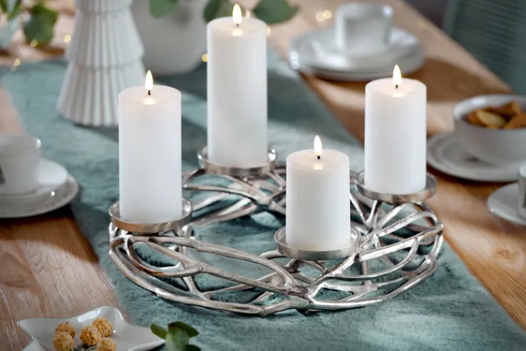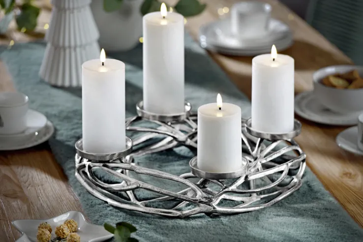 Das fragil wirkende Design des Kerzenleuchters wird durch das helle Silbergrau noch betont. Es verleiht dem Kerzenleuchter Ringval eine wundervolle Leichtigkeit, die ebenso gut in ein klassisches wie in ein modernes Ambiente passt. Die feinen Streben lassen an ineinander verflochtene Äste denken und wirken herrlich natürlich und sehr elegant. Gleichzeitig bietet es die Möglichkeit, den Kerzenleuchter Ringval nach dem eigenen Geschmack noch weiter zu dekorieren. Des Weiteren passt die Farbe zu allen anderen weihnachtlichen Designs. Ob einzeln oder als Teil der Dekoration: Der Kerzenleuchter Ringval ist einfach schön.