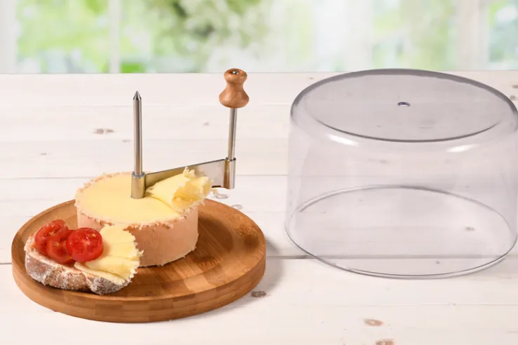 Mit einem Durchmesser von 22 cm und einer Höhe von 14,3 cm bietet der Käsehobel ausreichend Platz für verschiedene Käsesorten. Das Gewicht von 1,06 kg sorgt für Stabilität bei der Nutzung. Der Hobel ist mit einem transparenten Deckel ausgestattet, der den Käse frisch hält und gleichzeitig vor äußeren Einflüssen schützt. Die Kombination aus Holz und Metall verleiht dem Produkt eine robuste und langlebige Qualität.