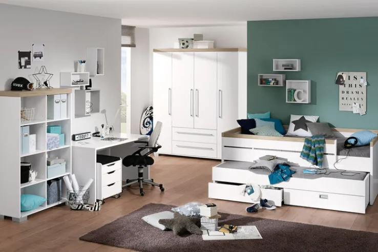 Seine schlichte Form ist überall gern gesehen. Fast ganz schnörkellos gehen die breiten Seitenteile in die Arbeitsplatte über. Der Tisch ist angenehm tief und breit, er bietet daher viel Platz zum Arbeiten. Das schöne Möbelstück eignet sich für das heimische Arbeitszimmer oder für ein Büro. Auch in einem Jugendzimmer kommt es sehr gut an. Es harmoniert mit den weißen Möbeln des passenden Zimmers, das Sie ebenfalls bei porta! erhalten. Sie können den Schreibtisch auch als Solitär stellen und mit einer schwarz-weißen Einrichtung kombinieren.