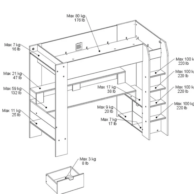 Das knallt! Nur die integrierte Leiter vom Bett runter und schon kann wieder gezockt werden. Endlich ist auch die Frage geklärt, wo der Rechner mit schnellem Prozessor einen geeigneten Platz findet. Das Gaming Hochbett verfügt einen doppelten USB-Steckplatz, die LED-Beleuchtung bietet einen zum Spielen passenden Farbwechsel. Das Hochbett kann individuell mit Lattenrost und passender Matratze ergänzt werden. Es wird zerlegt geliefert, die Montage ist einfach. Ebenfalls zum Lieferumfang gehören Pflegehinweise.