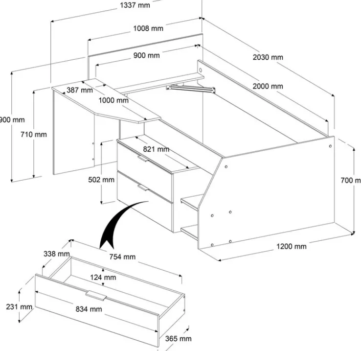 Anzahl Schubkästen inklusive: 2Anzahl Lattenroste inklusive: KeineAnzahl Matratzen inklusive: Keine