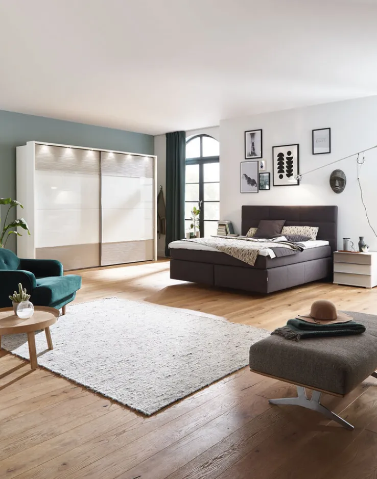 Der Kleiderschrank aus der Serie CASSANO PLUS beeindruckt durch sein modernes Design und die Kombination aus Glas und Holznachbildung. Mit einer Breite von 250 cm, einer Höhe von 217 cm und einer Länge von 67 cm bietet er großzügigen Stauraum für Kleidung und Accessoires. Die Hauptfarbe Grau wird durch weiße Elemente ergänzt, was dem Schrank eine elegante und zeitlose Optik verleiht.