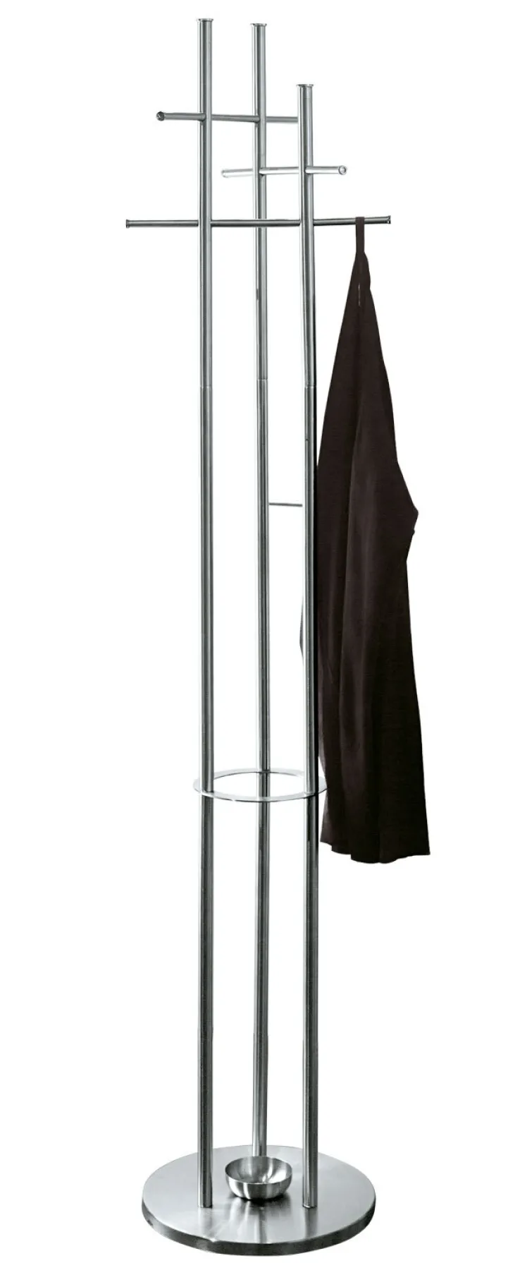 Die klare Linienführung und die stabile Konstruktion machen diesen Kleiderständer zu einem praktischen Begleiter im Alltag. Die Anordnung der Stangen ermöglicht eine vielseitige Nutzung, während die robuste Basis für einen sicheren Stand sorgt. Der Kleiderständer ist nicht nur funktional, sondern auch ein stilvolles Element in jedem Eingangsbereich oder Schlafzimmer.