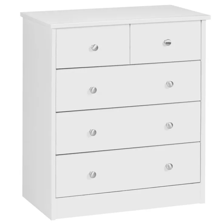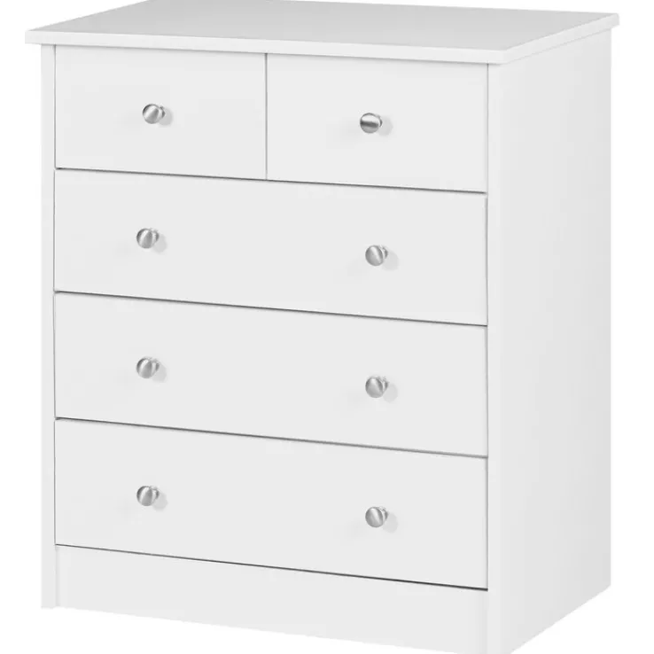 Die vielseitige Kommode in der Farbe Weiß vereint eine stilvolle Optik mit praktischer Funktionalität. Durch das geradlinige Design mit Knopfgriffen an den Fronten ist die Schubladenkommode mit den Maßen 60 x 70 cm vielseitig kombinierbar und passt in den modern eingerichteten Wohnbereich. Fünf Schubkästen bieten ausreichend Platz für Wäsche, Kleidung und Kleinteile. Die Kommode sorgt in jeder Einrichtung für eine wohnliche Atmosphäre.