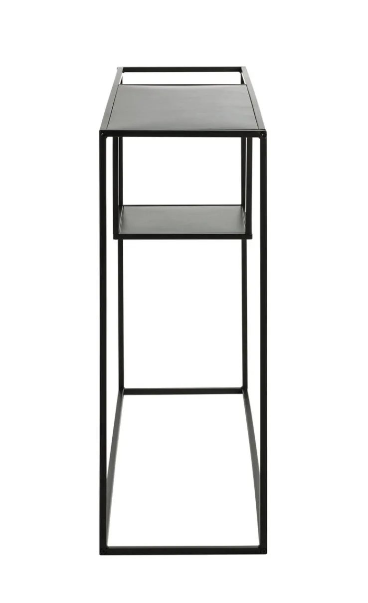 Durch die zeitlose schwarze Farbe erhält der Tisch eine moderne und vielseitig kombinierbare Ästhetik. Mit seinen großzügigen Maßen bietet er ausreichend Platz für verschiedene Zwecke. Er eignet sich ideal als schmaler Beistelltisch im Flur, als dekoratives Element im Wohnzimmer oder als praktische Ablage im Schlafzimmer.