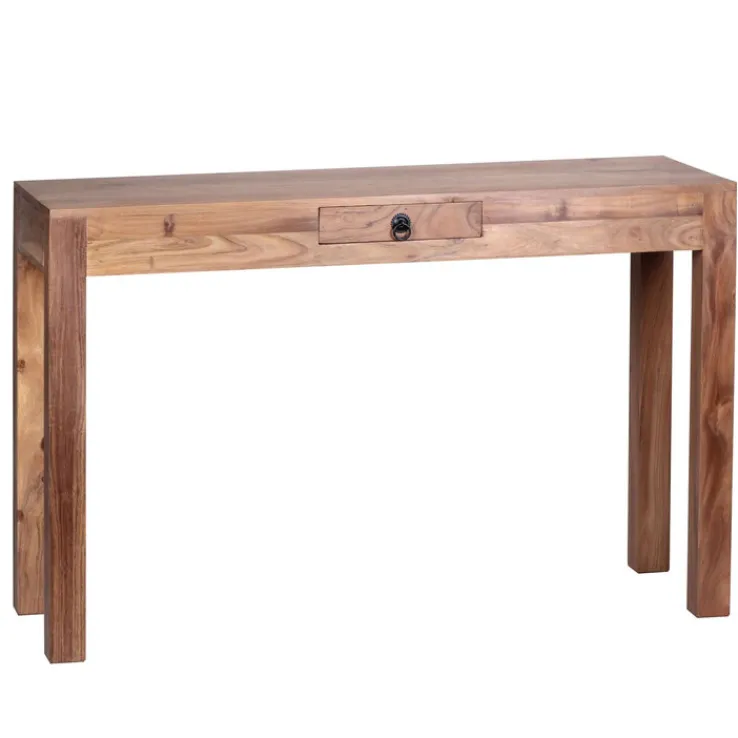 Der in brauner Akazie gehaltene Konsolentisch, der die Maße 120 x 70 cm aufweist, ist ein optisch ansprechendes Möbel, das allerdings ebenso funktional zu überzeugen vermag.