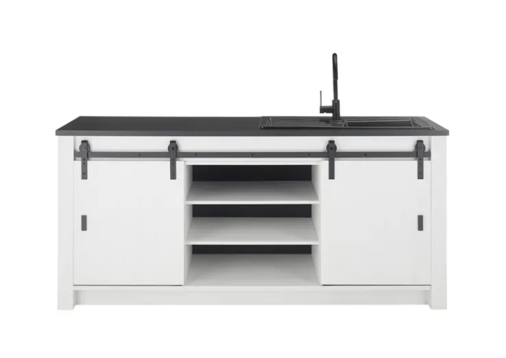 Besondere Details wie die optionale Schiebetürkonstruktion (z. B. mit Scheunentorbeschlägen) unterstreichen den rustikalen Charakter. Der Einbau eines Spülbeckens oder Kochfelds ist flexibel auf der linken oder rechten Seite möglich.