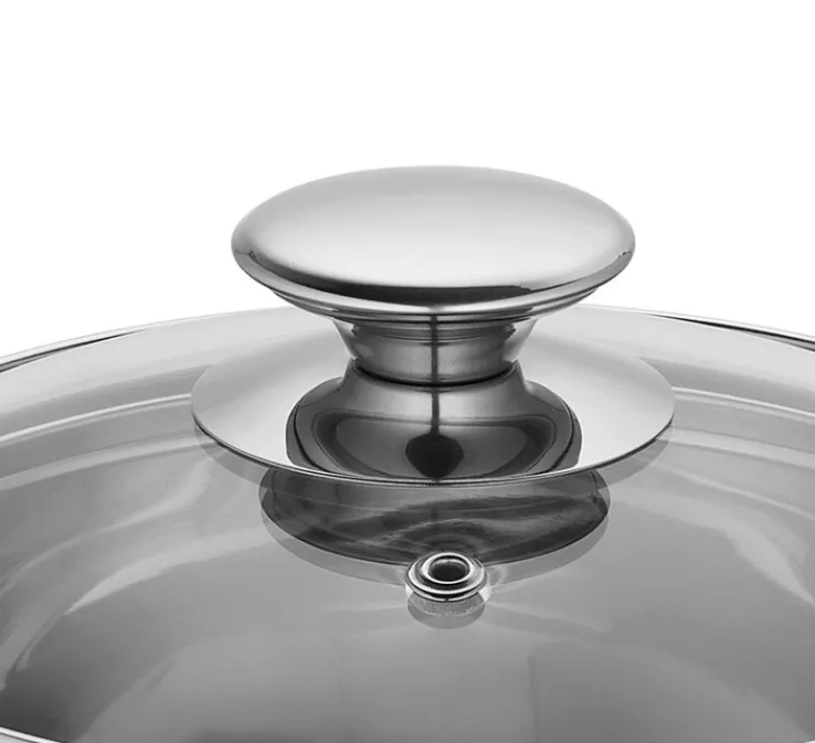 Der Kochtopf und die seitlich befestigten Bügelgriffe bestehen aus hochwertig verarbeitetem Edelstahl. Das verwendete Metall ist säurebeständig, lebensmittelfest und rostfrei. Der Deckel ist aus stabilem und hitzebeständigem Sicherheitsglas gefertigt. Durch den modernen Sandwichboden ist der Topf für alle Herdarten inklusive Induktion geeignet.