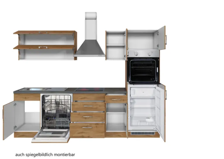 im Lieferumfang enthalten PORTA: 1 Küchenzeile mit Geräten It. AusstattungZusatzhinweise PORTA: Bitte die Pflegeanleitung an der Ware beachten.Weitere Informationen können dem PDF Datenblatt auf der Produktdetailseite entnommen werden.Lieferhinweise PORTA: Alle Maße sind circa Angaben. Geringfügige Abweichungen sind möglich.Die Lieferung erfolgt je nach Artikelart frei Verwendungsstelle, frei Bordsteinkannte auf einer Einwegpalette oder als Paket. Bitte trage Sorge dafür, dass am vereinbarten Speditionsliefertermin die Ware entgegengenommen werden kann.Lieferhinweis: ohne DekorationEntsorgungshinweis PORTA: Weitere Informationen zur Entsorgung von Altgeräten findest du in unseren Entsorgungshinweisen (https://porta.de/entsorgungshinweis)Sicherheitshinweise / Gefahrenhinweise / Warnhinweise PORTA: Bitte beachten, dass Anschlüsse von Elektrogeräten nur durch einen Fachmann durchgeführt werden dürfen. Informationen dazu sind beim Service-Center erhältlich.Lieferzustand: zerlegt