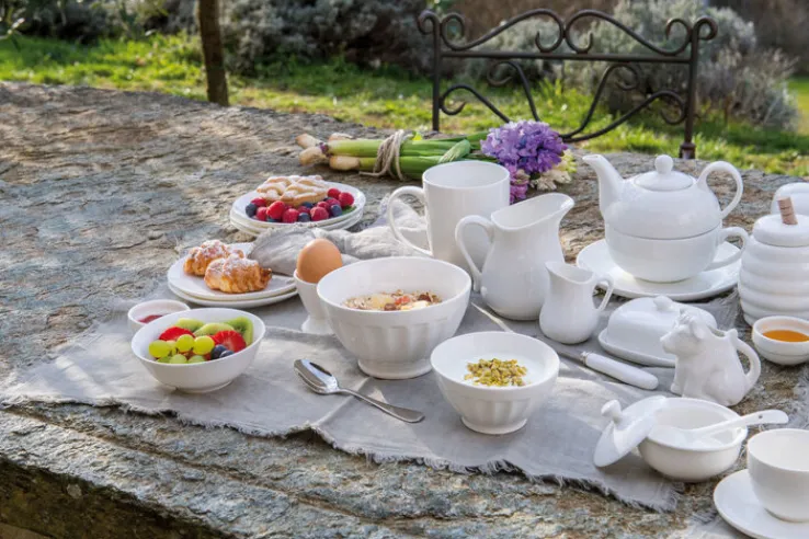 Die aparte, zweiteilige Butterdose TERRINE mit Deckel aus Porzellan überzeugt mit einem reduzierten Design und klarer Farbgebung in Weiß. Elegant bereichert sie Ihren Frühstückstisch und versorgt Sie mit perfekter, frischer Butter ohne störenden Nebengeschmack.