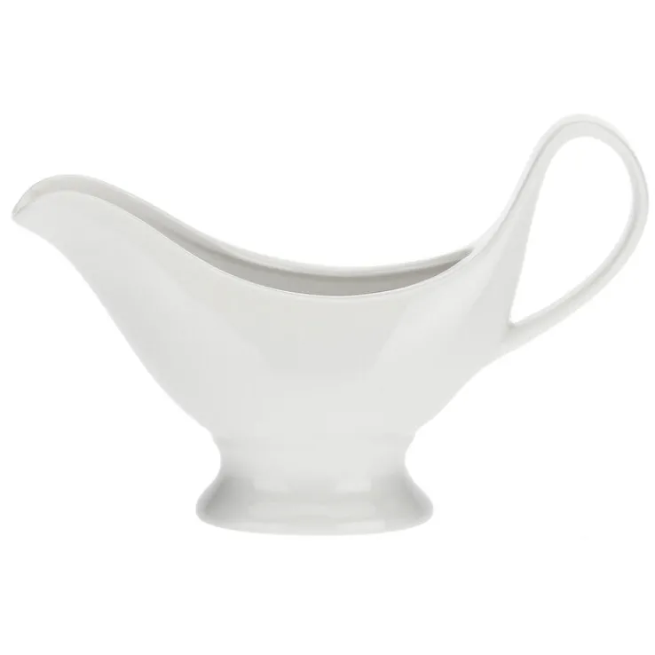 Schlicht, aber trotzdem elegant präsentiert sich die große Sauciere MENAGE aus weißfarbigem Porzellan. Durch ihre klassische Form ist die Sauciere MENAGE aus dem Hause LA PORCELLANA BIANCA mit den Maßen 7 x 15 cm vielseitig verwendbar. Sie passt gut auf den Mittagstisch, ist aber auch ein Blickfang auf festlich gedeckten Tafeln. Durch das hochwertige Porzellan sind Rahm- und Bratensoßen, aber auch ein Salatdressing lange frisch. Das Aufwärmen der Soßen in der Mikrowelle ist möglich.