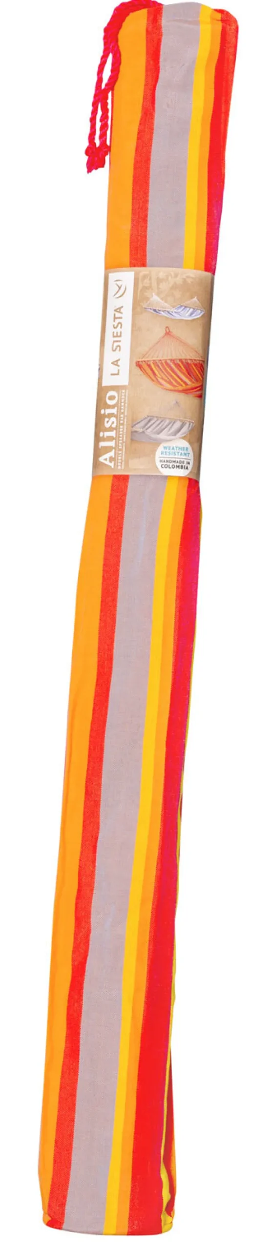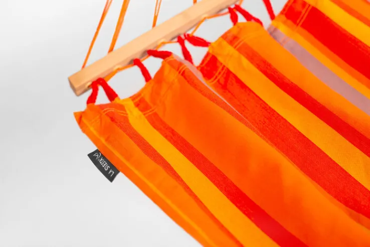 Die Hängematte ALISIO von La Siesta bietet eine perfekte Kombination aus Komfort und Stil für Ihren Garten. Mit einer großzügigen Liegefläche von 160 cm Breite und 210 cm Länge ist sie ideal für entspannte Stunden im Freien. Die Hängematte besteht aus hochwertigem, schnelltrocknendem Outdoorgewebe aus 100% Polypropylen, das Langlebigkeit und Wetterbeständigkeit gewährleistet. Die auffälligen Streifen in Orange, Gelb und Mehrfarbig verleihen der Hängematte einen lebendigen Boho- und Retro-Stil, der jeden Außenbereich aufwertet. Die Konstruktion aus massivem Bambus sorgt für Stabilität und eine maximale Belastbarkeit von bis zu 160 kg. Genießen Sie die Liegefunktion und das angenehme Gefühl der Synthetikfaser, während Sie sich in dieser stilvollen Hängematte entspannen.