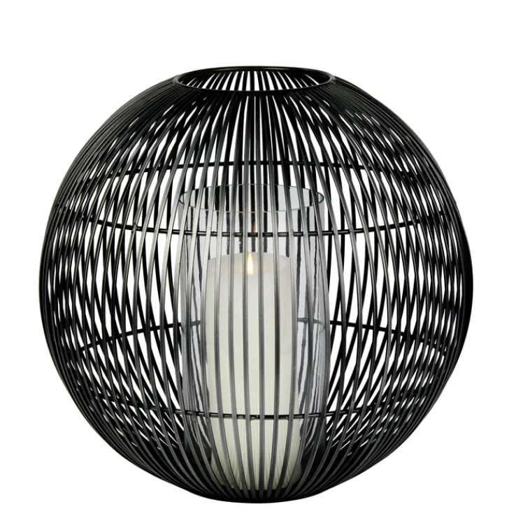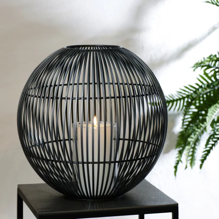 Das Windlicht „WEMBLEY“ von Lambert vereint modernes Design mit funktionaler Eleganz. Gefertigt aus robustem Eisen und Glas, präsentiert es sich in einer stilvollen Lamellenoptik, die dem Raum eine besondere Atmosphäre verleiht. Die Hauptfarbe Schwarz unterstreicht das zeitlose Design und passt sich mühelos verschiedenen Einrichtungsstilen an. Mit einem Durchmesser von 38 cm und einer Höhe von 35 cm ist es ein markantes Dekorationsstück, das sowohl im Innen- als auch im Außenbereich eingesetzt werden kann.