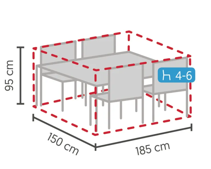 Die graue Schutzhülle in der Große S von LC WHOLESALER aus Polypropylen weist eine Breite von 150 cm, eine Tiefe von 185 cm und eine Höhe 95 cm auf, sodass sie für kleinere Außensitzgruppen geeignet ist. Sie überzeugt nicht nur durch ihre Wetterfestigkeit und Frostfestigkeit, sondern auch durch ihr recyclebares und damit umweltfreundliche Material.