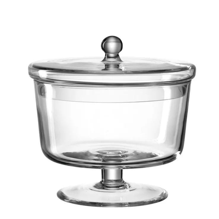 Die LEONARDO Dose POESIA besitzt einen runden Fuß und einen kleinen Stiel. Darauf ruht ein zylinderförmiges Gefäß, das mit einem runden Deckel mit Knopfgriff ausgestattet ist. Die Dose besteht aus hochwertigem Klarglas und wurde in sorgfältiger Handarbeit hergestellt. Die Dose ist lebensmittelecht und kann sogar in der Spülmaschine gereinigt werden. Sie eignet sich hervorragend, um bunte Bonbons, Weingummis oder Kekse aufzubewahren. Doch natürlich kann sie auch mit anderen Dingen befüllt werden.
