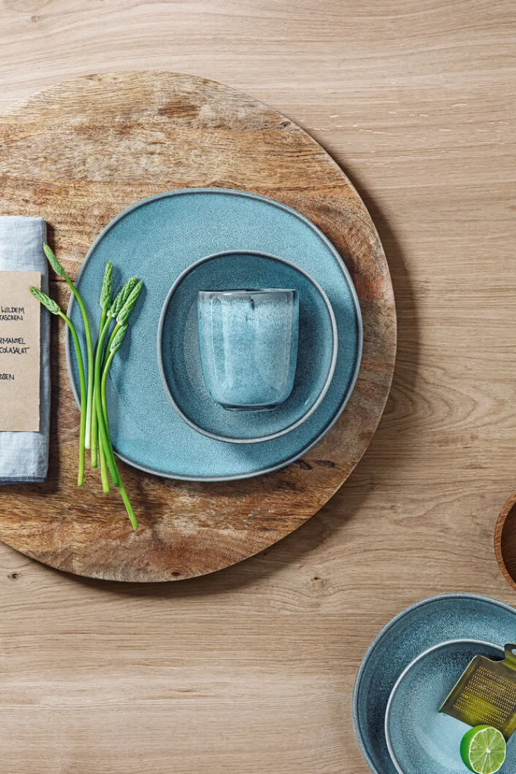 Die flache Schale aus dem LAVE-Sortiment der like.-Kollektion vom renommierten Label Villeroy & Boch ist türkis und hat eine Breite von 27 cm. Sie kann zur stilvollen Präsentation der verschiedensten Snacks verwendet werden. So lassen sich Nüsse, gebrannte Mandeln, aber auch Canapés geschmackvoll arrangieren. Wer sein Frühstück auf eine ganz besondere Art genießen möchte, kann die Schale auch für das Müsli nutzen. Dank ihres neutralen Designs kann sie vielseitig zu anderen Geschirrteilen kombiniert werden.