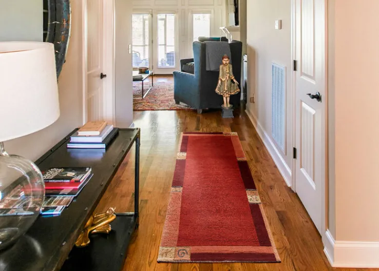 Dieser schicke Teppich im länglichen Format macht im Flur eine ebenso gute Figur wie im Wohnzimmer. In beiden Fällen sorgt er zudem für ein angenehmes Barfußlaufen. Er kommt aus Indien und besteht aus 100 % Wolle. Der Teppich wiegt 9,3 kg und hat eine Florhöhe von 15 mm sowie eine Gesamtflorhöhe von 20 mm. Er besitzt ein Flächengewicht von 4.500 g/qm, ist robust und zudem für Fußbodenheizungen geeignet.