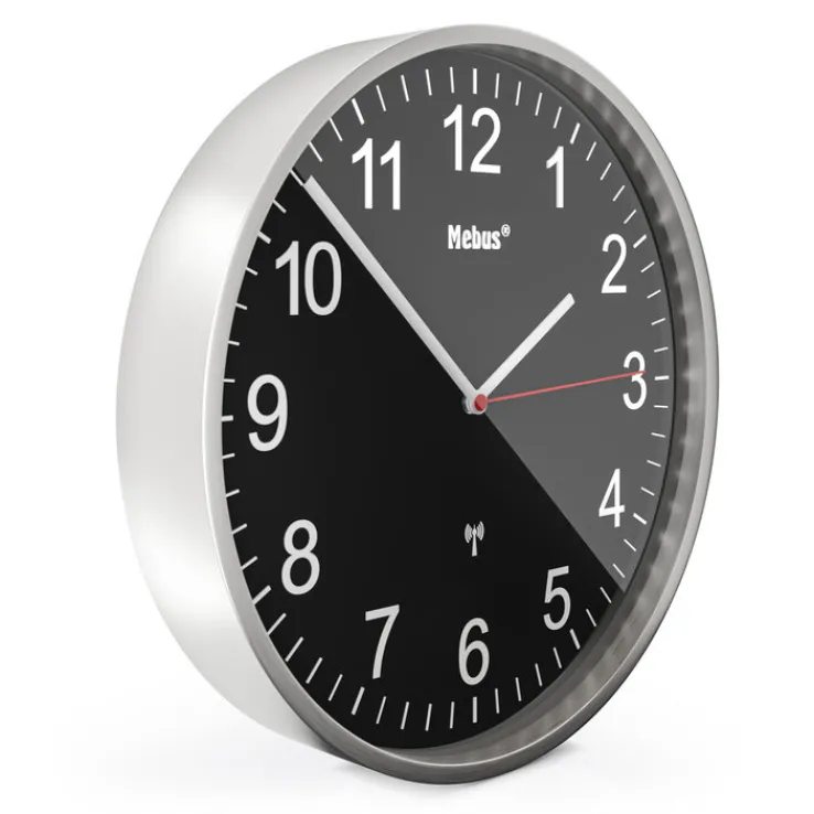Die Wanduhr von Mebus ist ein schöner Blickfang in der Küche, aber auch im Arbeitszimmer macht sie mit ihrem modernen Look richtig etwas her. Die Uhr und funktioniert mit einem praktischen Funk-Uhrwerk. Zum Betrieb wird eine Batterie des Typs 1,5V AA benötigt.