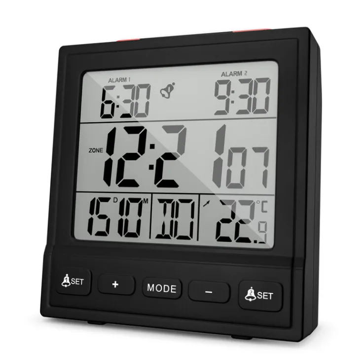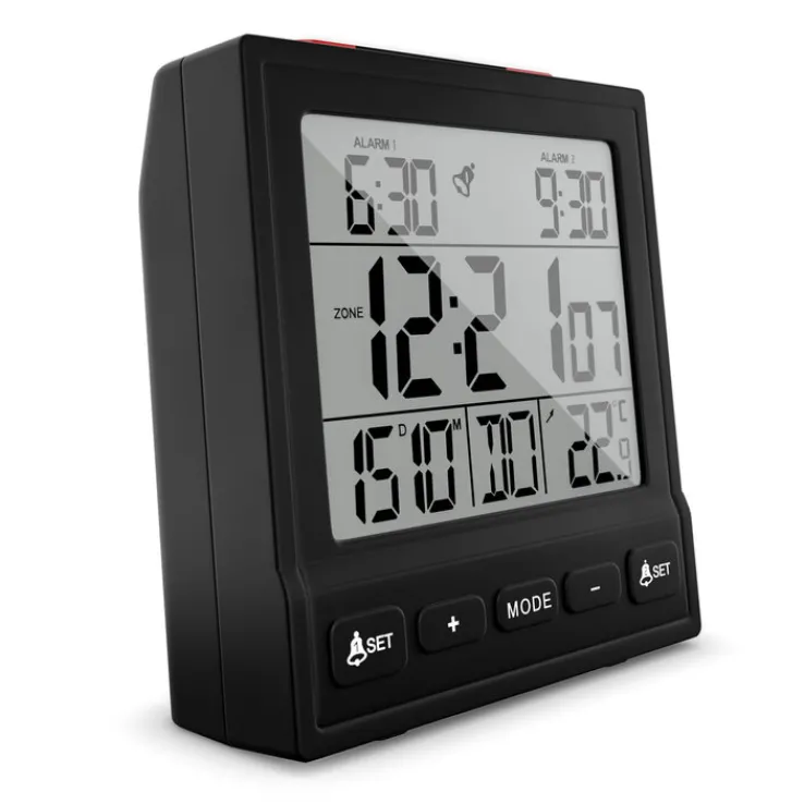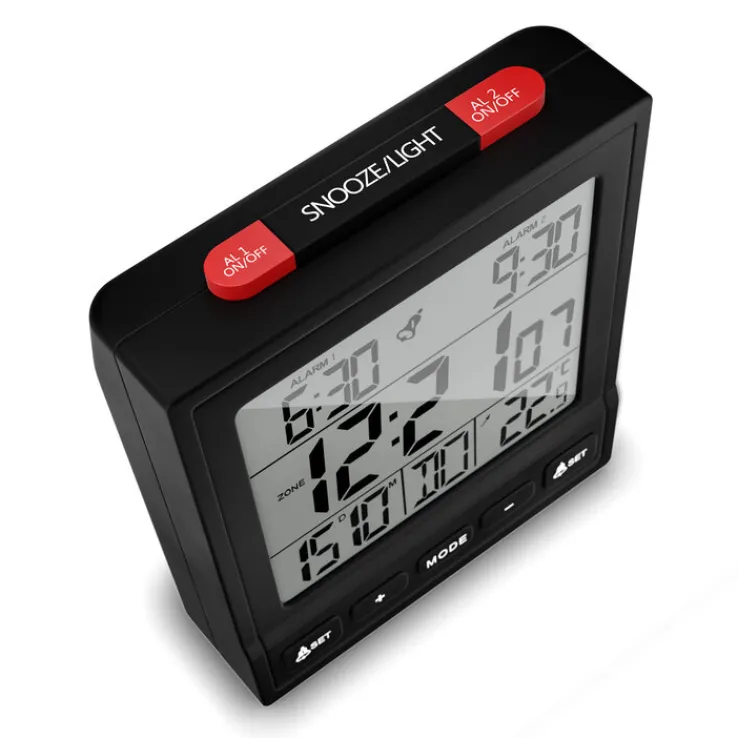 Das Gehäuse des Funkweckers besteht aus hochwertigem Kunststoff. Für die Anzeigen ist der Wecker mit einem hochwertigen Display ausgestattet. Die Einstellung der verschiedenen Funktionen erfolgt vollautomatisch. Der digitale Funkwecker funktioniert mit zwei 1,5V Batterien vom Typ AAA.
