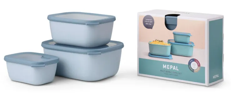 Die MEPAL Frischhaltedose CIRQULA I im 3er-Set ist in stylischem Nordic Blue gehalten. Aufgrund unterschiedlicher Größen sind die Vorratsdosen ideal zum Aufbewahren von Lebensmitteln eignet und lassen sich zum Aufwärmen oder Einfrieren von Speisen verwenden.