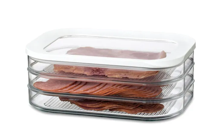 Die mepal Kühlschrankdose MODULA hat ein Fassungsvermögen von 1650 ml, besitzt einen weißen Deckel und bietet sich hervorragend für die Aufbewahrung von Fleischwaren und Aufschnitt an.